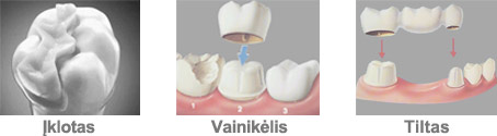 - Atstatant didelius dantų defektus, kurių negalima atstatyti plombinėmis medžiagomis;